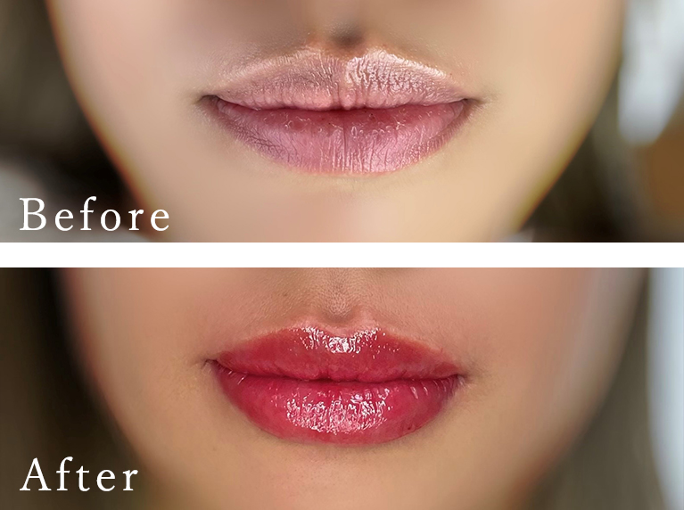 専用の器具を用いてリップに色を入れていきます。 血色の悪い唇を改善し、患者様のお好みの色や形に近づけることが可能です。 食事などでリップメイクが取れてしまうこともありません。