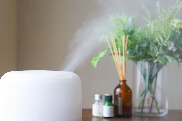 加湿器の使用、濡らしたタオルを干す、マスクを湿らせるといった方法で湿度を上げると、のどの痛みや違和感が軽減されます。